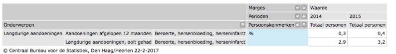 Vanaf 2014 is het aantal beroertes/herseninfarcten toegenomen